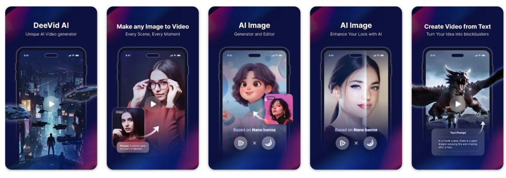 DeeVid AI is like a full production studio. It takes the images (often generated by Nano Banana), animates them, applies advanced editing, and produces finished video content ready for sharing or marketing.