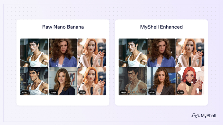 | Aspect | Nano Banana | MyShell (with Nano Banana) |