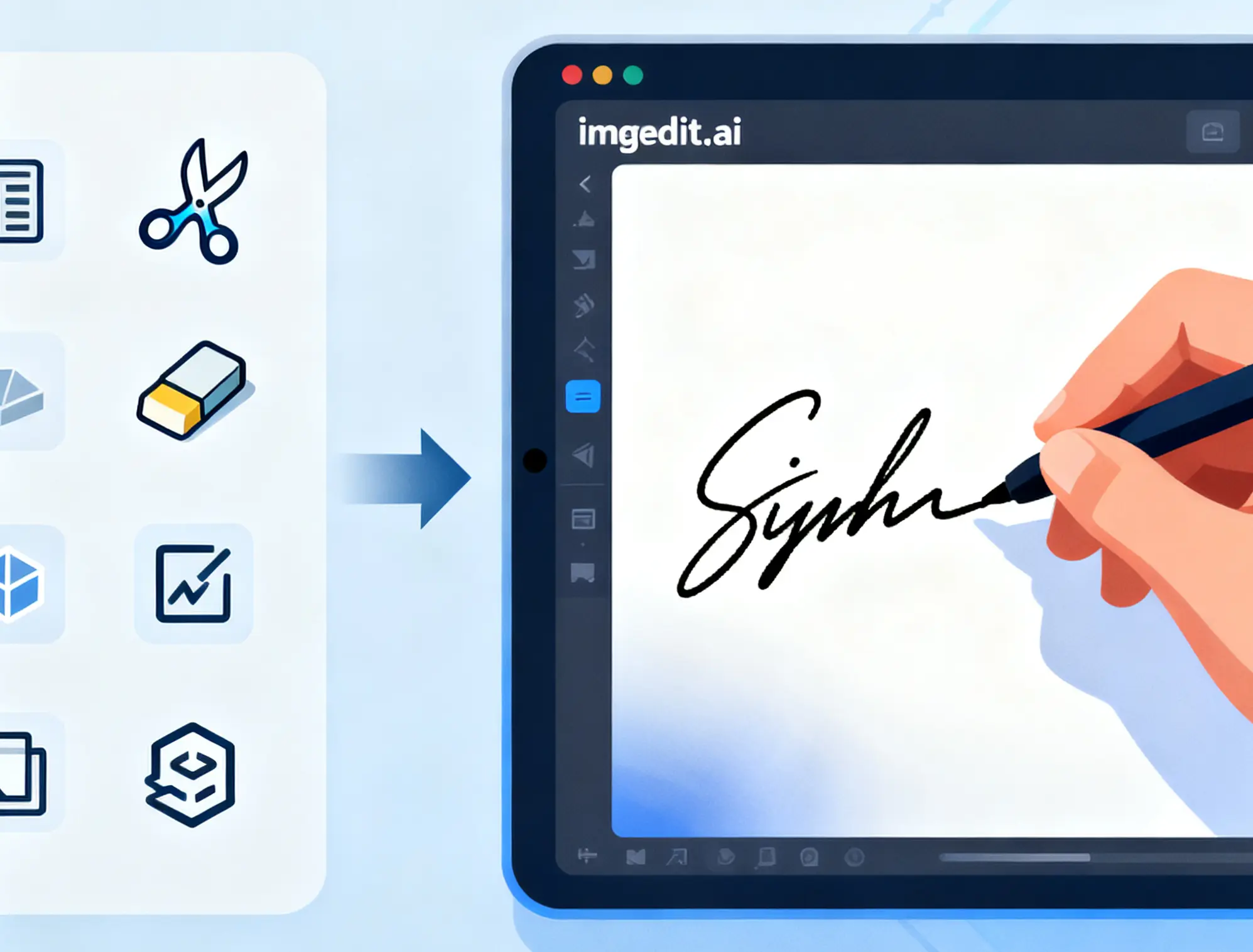 Previously, individuals used Photoshop or manual erasers to crop a background from the scanned signature. It was not only tedious, but it also had jagged edges. A specialized signature extractor tool like imgedit.ai performs the entire process in seconds with AI-driven accuracy. The signature is always processed to a smooth and high-resolution that looks natural and professional.